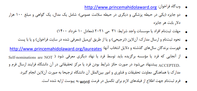 روابط عمومی معاونت تحقیقات و فناوری دانشگاه؛ فراخوان جایزه Prince Mahidol Award تایلند