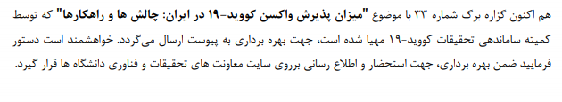 روابط عمومی معاونت های آموزشی، تحقیات و فناوری دانشگاه؛ میزان پذیرش واکسن کووید19 در ایران: چالش ها و راهکارها