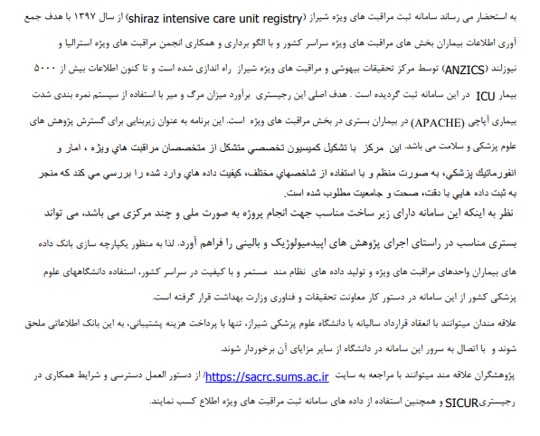 روابط عمومی معاونت تحقیقات و فناوری دانشگاه؛ فراخوان دعوت به همکاری در سامانه ثبت مراقبت های ویژه شیراز