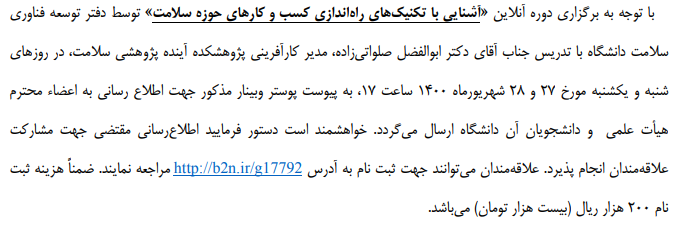 تاریخ درج خبر: يکشنبه ٢٨ شهريور ١٤٠٠ / شماره خبر: ١٣٥٧١ / تعداد بازدید: 487