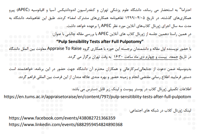 روابط عمومی معاونت های آموزشی، تحقیقات و فناوری دانشگاه؛ برگزاری دهمین جلسه ژورنال کلاب آنلاین APEC