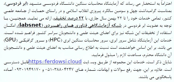 روابط عمومی معاونت های آموزشی، تحقیقات و فناوری دانشگاه؛ شبكه آزمايشگاهي فناوري هاي راهبردِی دانشگاه فردوسی ( labsn et ) شبكه آزمايشگاهي فناوري هاي راهبردی