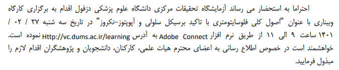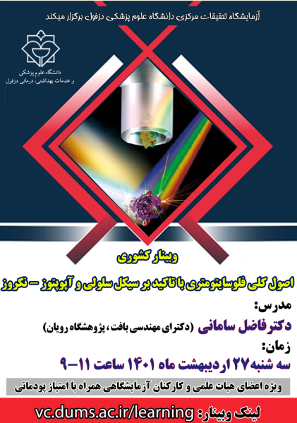 روابط عمومی معاونت تحقیقات و فناوری دانشگاه؛ کارگاه وبیناری با عنوان اصول کلی فلو سایتومتری با تاکید بر سیکل سلولی و آپتوز - نکروز