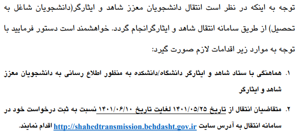 ثبت نام دانشجویان شاغل به تحصیل در سامانه دانشجویان شاهد و ایثارگر