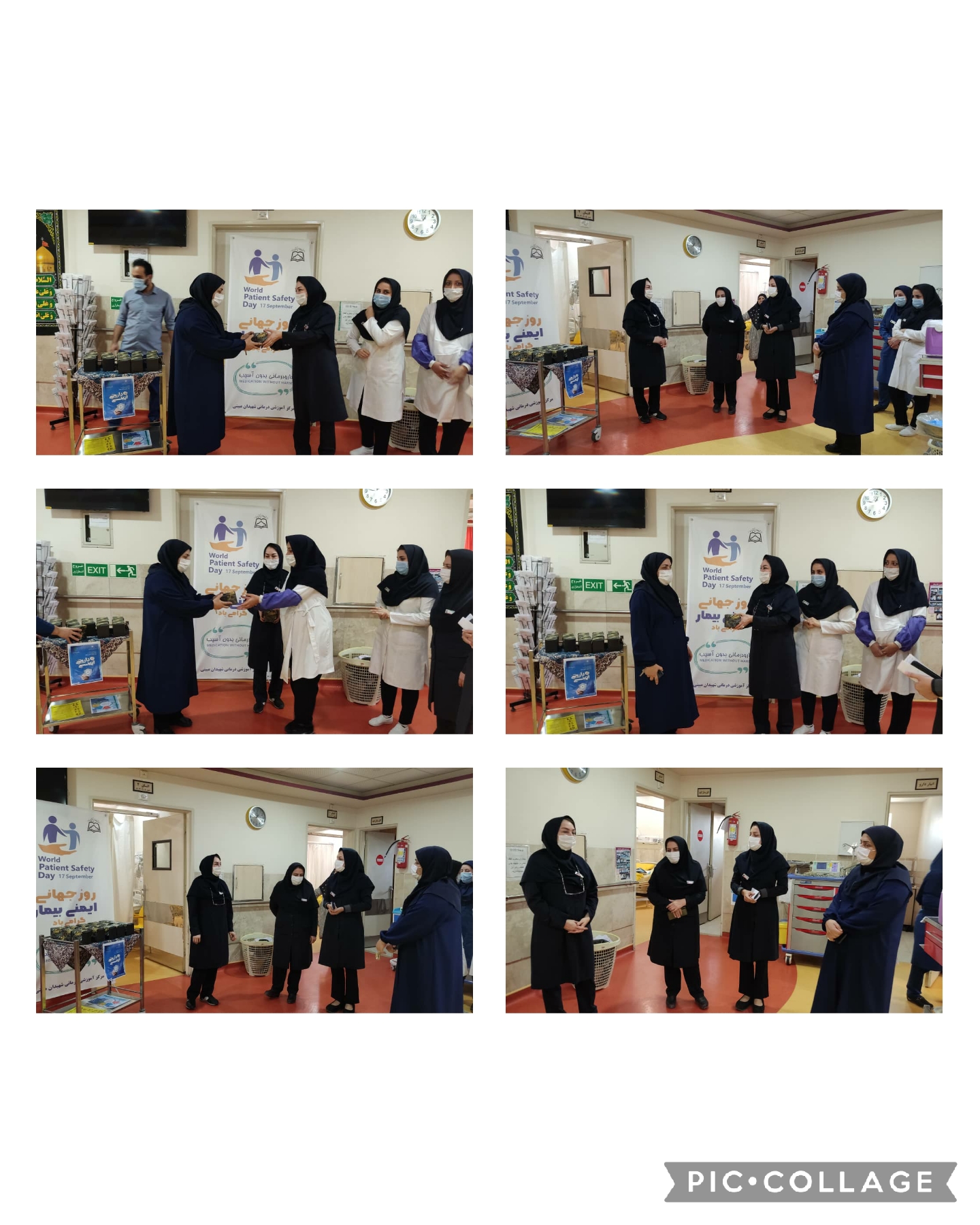 به مناسبت گرامیداشت روز جهانی ایمنی بیمار 7 سپتامبر 2022 که مصادف با 26 شهریور ماه 1401 بود.بازدید مدیریتی ایمنی بیمار با حضور ریاست بیمارستان و اعضای تیم مدیریتی از بخش های بالینی به عمل آمد.کارشناس ایمنی بیمار در این بازدید به شعار سال 2022 که دارودرمانی بدون آسیب بود اشاره نمودند و به لزوم بکارگیری دستورالعمل های دارویی ،توجه به 7Rدارودهی در جهت ارتقاایمنی دارویی بیماران تاکید نمودند.همچنین در این بازدید از پرسنل بخش پس از زایمان جهت آمار بالاترین گزارش خطا تقدیر به عمل آمد و در راستای الگو سازی فرایند گزارش خطا و رهنگ سازی ایمنی بیمار جوایزی میز به پرسنل این بخش اهدا شد.