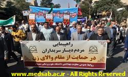 به گزارش وبدا/ این راهپیمایی که از مقابل مسجد جامع تاریخی تا میدان کارگر این شهر آغاز شد با حضور مسوولان، روحانیان، نیروهای نظامی و انتظامی، خانواده معظم شاهد، ایثارگران، جامعه فرهنگیان، دانش آموزان و اقشار مختلف مردم سبزوار همراه بود. جامعه دانشگاهی علوم پزشکی سبزوار همگام با آحاد مردم با در دست داشتن پرچم سه رنگ ایران اسلامی با سر دادن شعارهای "الله اکبر، مرگ بر آمریکا، مرگ براسرائیل، نیروی انتظامی حمایتت میکنیم، مرد غیرت افتخار، زن عفت افتخار، نیروی انتظامی تشکر" در این راهپیمایی شرکت کردند. در پایان این راهپیمایی، مردم سبزوار در دفاع از آرمانهای انقلاب قطع نامهای قرائت کردند و اقدامات دشمنان انقلاب و عوامل آنها را در ایجاد اغتشاش و خرابکاری را محکوم کردند و بر حمایت و دفاع از منزلت زن ایرانی و حجاب او تاکید کردند.