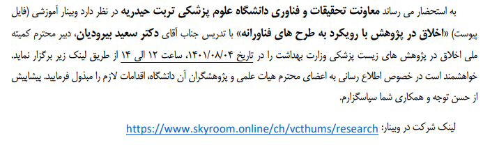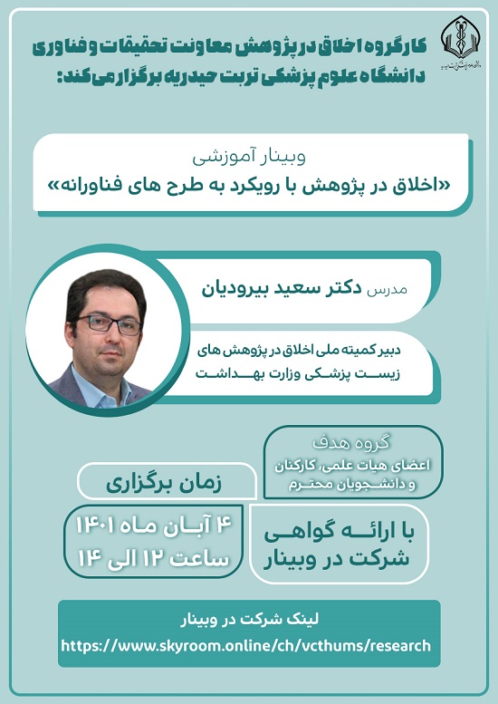 روابط عمومی معاونت تحقیقات و فناوری دانشگاه؛ وبینار اخلاق در پژوهش با رویکرد به طرح های فناورانه