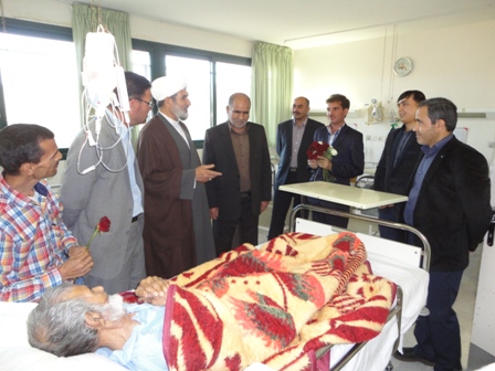 به مناسبت گراميداشت هفته سلامت، جمعی از مسئولين شهرستان از بيماران بستری در بيمارستان ولی عصر (عج) عيادت و دلجويی نمودند.