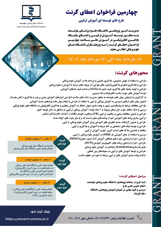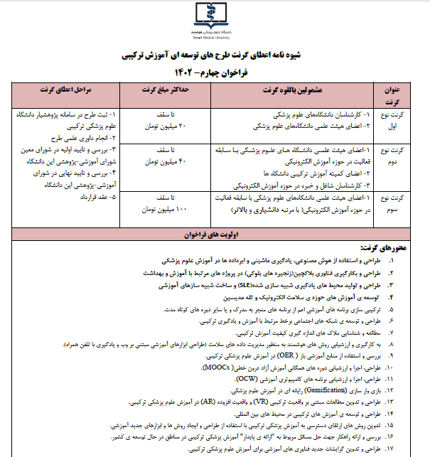 روابط عمومی معاونت آموزشی دانشگاه؛ شیوه نامه اعطای گرنت طرح های توسعه آموزش ترکیبی شیوه نامه اعطای گرنت طرح های توسعه آموزش ترکیبی؛ فراخوان چهارم - 1402