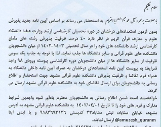 روابط عمومی معاونت آموزشی دانشگاه؛ پذیرش استعداد درخشان ( دانشکده علوم قرآنی مشهد )