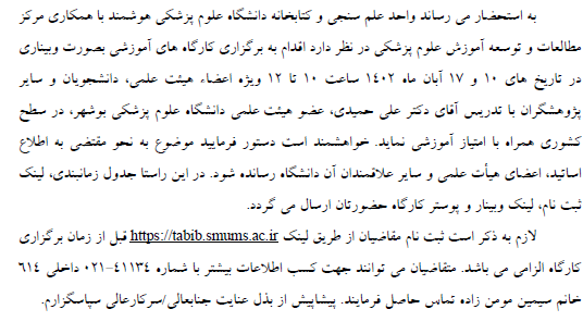 روابط عمومی معاونت تحقیقات و فناوری دانشگاه؛ کارگاه های واحد علم سنجی و کتابخانه دانشگاه علوم پزشکی هوشمند برگزاری کارگاه های واحد علم سنجی و کتابخانه دانشگاه علوم پزشکی هوشمند
