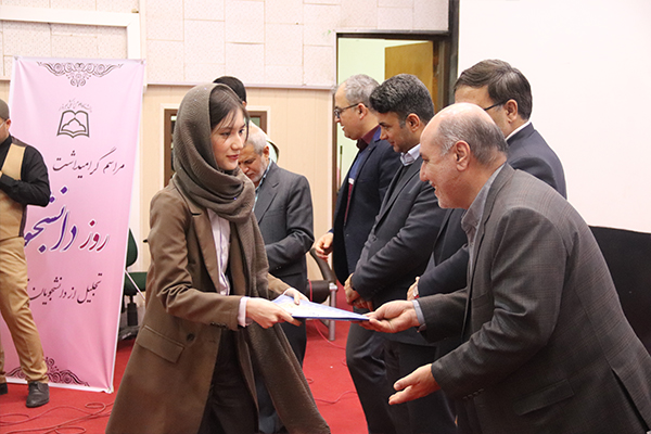 مناسبت روز دانشجو جشن پرشور روز دانشجو با حضور ریاست محترم، معاونین و دانشجویان دانشگاه جشن روز دانشجو با استقبال پرشور دانشجویان دانشگاه با حضور دکتر سالاری ریاست محترم دانشگاه و جمعی از معاونان و مسئولین در روز سه شنبه 14اذر ماه در محل سالن شهید آوینی برگزار گردید. به گزارش روابط عمومی معاونت فرهنگی ودانشجویی / جشن روز دانشجو با استقبال پرشور دانشجویان دانشگاه با حضور دکتر سالاری ریاست محترم دانشگاه و جمعی از معاونان و مسئولین در سه شنبه 14اذر ماه در محل سالن شهید آوینی برگزار گردید در ابتدای جلسه پس از قرائت قرآن و سرود جمهوری اسلامی از ریاست محترم دانشگاه جهت سخنرانی دعوت به عمل آمد. دکتر سالاری پس از عرض تبریک به مناسبت روز دانشجو به کلیه دانشجویان دانشگاه، سخنان خود را ایفاد نمودند. در ادامه ایشان با طرح سوال توضیح کامل از رویداد و چرایی گرامیداشت روز 16 اذر مسابقه ای همراه با دریافت هدیه را اعلام نمودند که دو نفر از دانشجویان با پاسخگویی دقیق سوالات برنده مسابقه گردیدند. در بخش بعدی اجرای استند اپ کمدی آقای حسن شمس آبادی کمدین نامدار شهرستان و همچنین اجرای گروه موسیقی سنتی شادی بخش محفل گردید. و در ادامه سنا جعفرلو دبیر انجمن های علمی دانشگاه و پس از ایشان امیرحسین لشکریان نماینده بسیج دانشجویی سخنرانی نمودند. در پایان از دانشجویان نمونه با اهدای لوح سپاس وهدیه تقدیر و تشکر گردید.