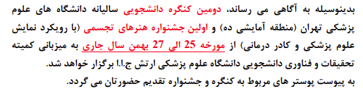 روابط عمومی معاونت های آموزش، تحقیقات و فناوری دانشگاه؛ دومین کنگره دانشجویی ( دانشگاه علوم پزشکی ارتش جمهوری اسلامی ایران )