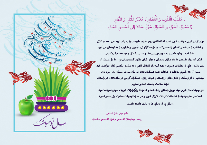 پیام تبریک ریاست بیمارستان حشمتیه بمناسبت عید نوروز