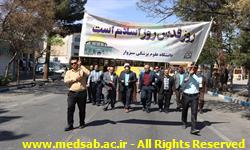 مراسم راهپیمایی روز جهانی قدس در آخرین جمعه ماه مبارک رمضان با حضور کلیه اقشار مردمی، رییس دانشگاه علوم پزشکی سبزوار و اعضای هیات رئیسه، معاونین، مدیران، کارکنان، اساتید و دانشجویان دانشگاه در محکومیت حمله تروریستی به ساختمان کنسولگری سفارت جمهوری اسلامي ايران در دمشق و دفاع از مردم مظلوم فلسطین همگام و هم صدا با سراسر کشور برگزار شد.
