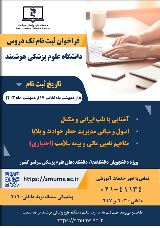 روابط عمومی پردیس دانشگاه؛ فراخوان ثبت نام تک دروس نیمه اول سال 1403 ارسال فراخوان ثبت نام تک دروس نیمه اول سال 1403- دانشگاه های علوم پزشکی سراسر کشور فراخوان ثبت نام تک دروس نیمه اول سال 1403- دانشگاه های علوم پزشکی سراسر کشور