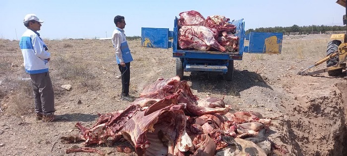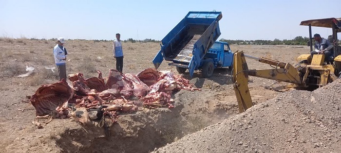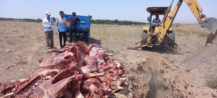 روابط عمومی شبکه بهداشت ودرمان جغتای؛ بیش از 1500 کیلوگرم گوشت قرمز در جغتای معدوم شد