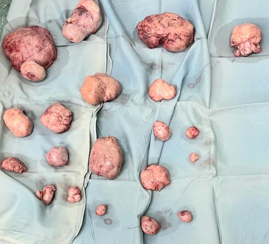 خارج کردن ۲۰ عدد فیبروم از رحم یک بیمار ۳۸ ساله در بیمارستان شهیدان مبینی