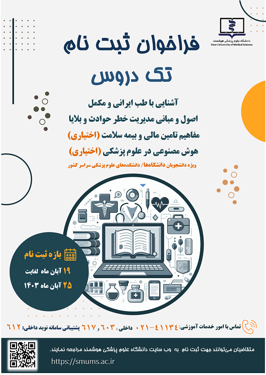 روابط عمومی پردیس دانشگاه؛ فراخوان ثبت نام تک دروس ( طب ایرانی،حوادث و بلایا،بیمه سلامت،هوش مصنوعی)