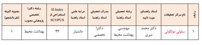 علمی دانشیار واجد شرایط برای راهنمایی دانشجویان دکتری پژوهشی می باشند. لذا با توجه به سوابق پژوهشی برجسته تخصصی(H-Index 43 )و چاپ مقالات