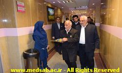 در روزپنج شنبه مورخه 21 مرداد ماه خادمین بارگاه ملکوتی امام رضا (ع) با پرچم حرم مطهر رضوی از بیماران بستری در این بیمارستان عیادت نمودند