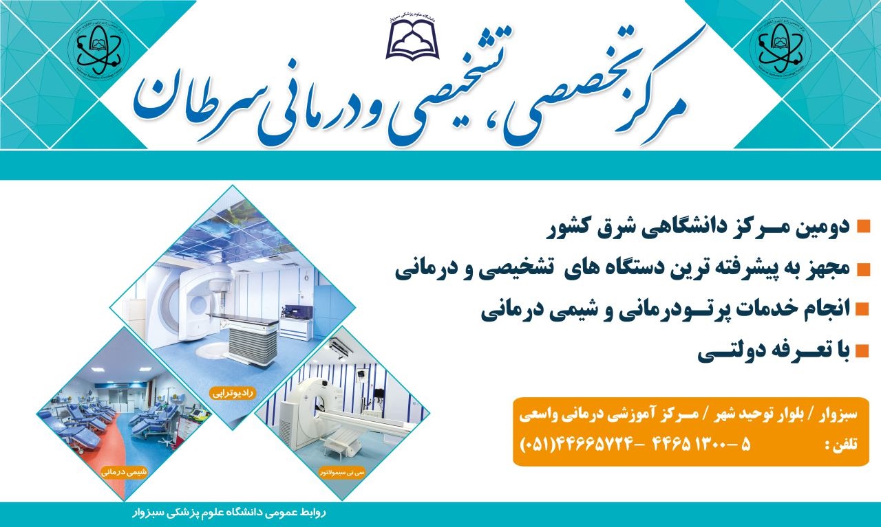 خدمتی دیگر از دانشگاه علوم پزشکی سبزوار / آغاز به کار دومین مرکز رادیو ترابی و آنکولوژی شرق کشور در سبزوار