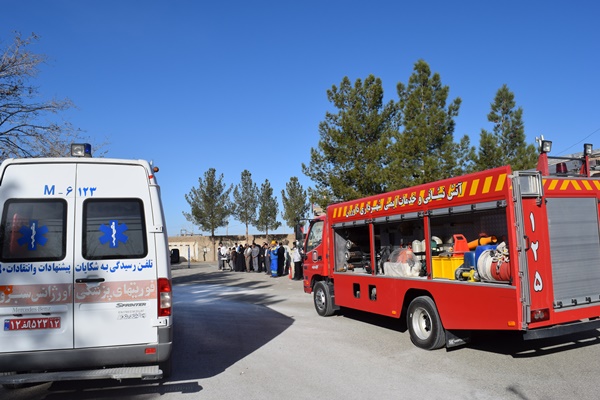 حضور تیم بازرسی بهداشت محیط و اورژانس 115 شبکه بهداشت و درمان شهرستان داورزن در مانور زلزله