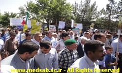 درآخرین جمعه ماه مبارک رمضان مورخه دوم تیرماه ، به مناسبت روز جهانی قدس و درحمایت ازمردم مظلوم فلسطین ، کارکنان شبکه بهداشت و درمان ، پرسنل بیمارستان ولی عصر(عج) و بسیجیان کانون بسیج جامعه پزشکی شهرستان جغتای به همراه دیگر اقشارمردم با شرکت در راهپیمایی روزقدس ومراسم باشکوه نمازجمعه ، ضمن تجدید میثاق باولایت و آرمانهای انقلاب اسلامی ، برائت خود را از اسرائیل غاصب ،آمریکا وکشورهای هم پیمان آنها اعلام نمودند.