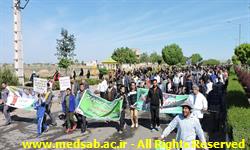 در مسیر راهپیمایی باهدف آموزش موثردیداری وشنیداری وبهره گیری از فنون آموزشی استاندارد ضمن ایراد شعارهای هفته سلامت رسانه های آموزشی پوستر و بنر های حاوی شعارهای بهداشتی در معرض دید همشهریان نصب و پمفلت آموزشی –کاربردی نیز به متقاضیان تقدیم گردید