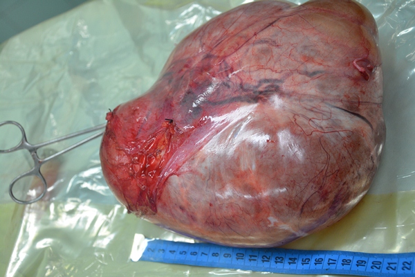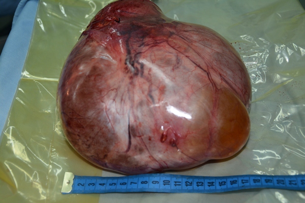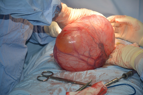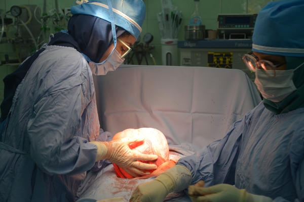 خروج توده 2610 گرمی تخمدان از شکم بیمار 39 ساله در بیمارستان شهیدان مبینی