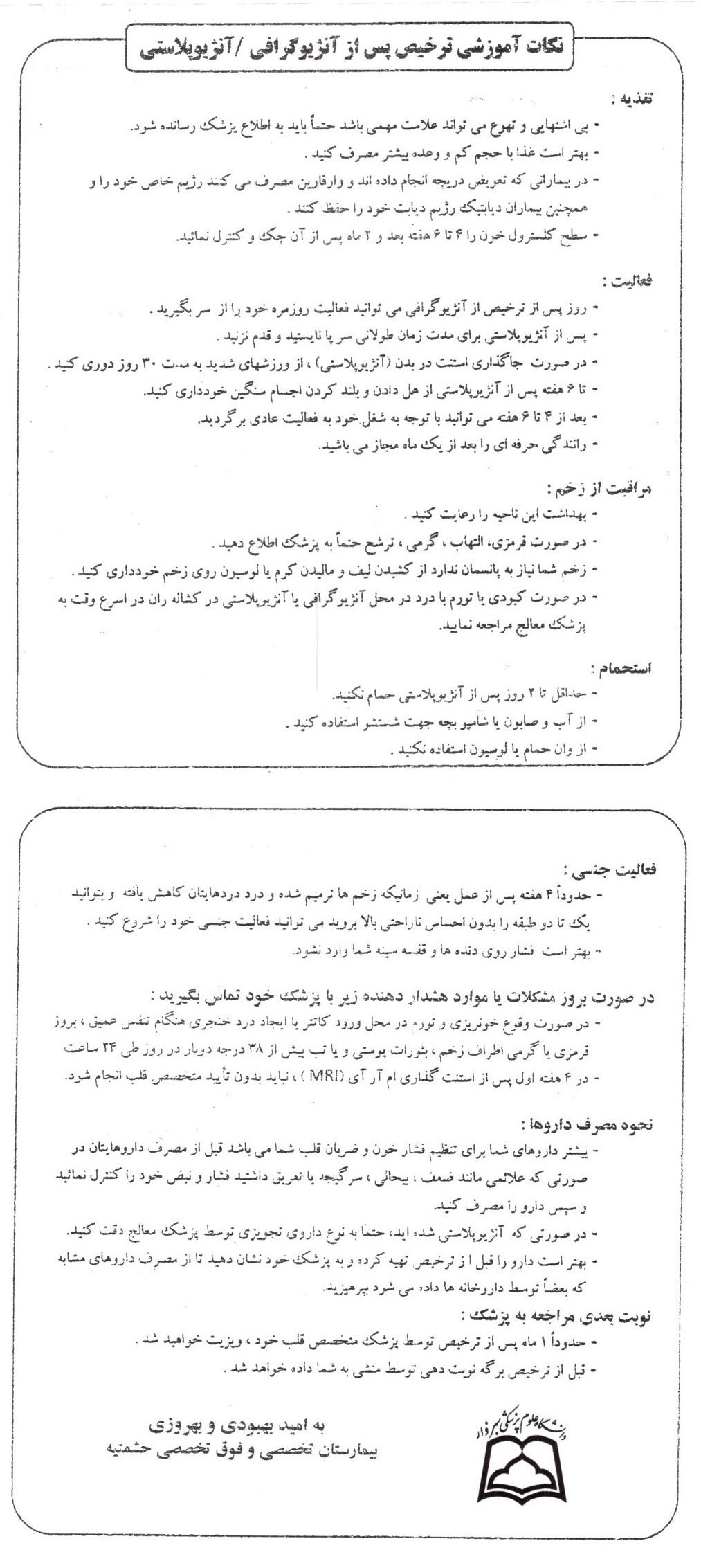 آموزش به بیمار خودتدبیری بعد از آنژیوگرافی و آنژیوپلاستی