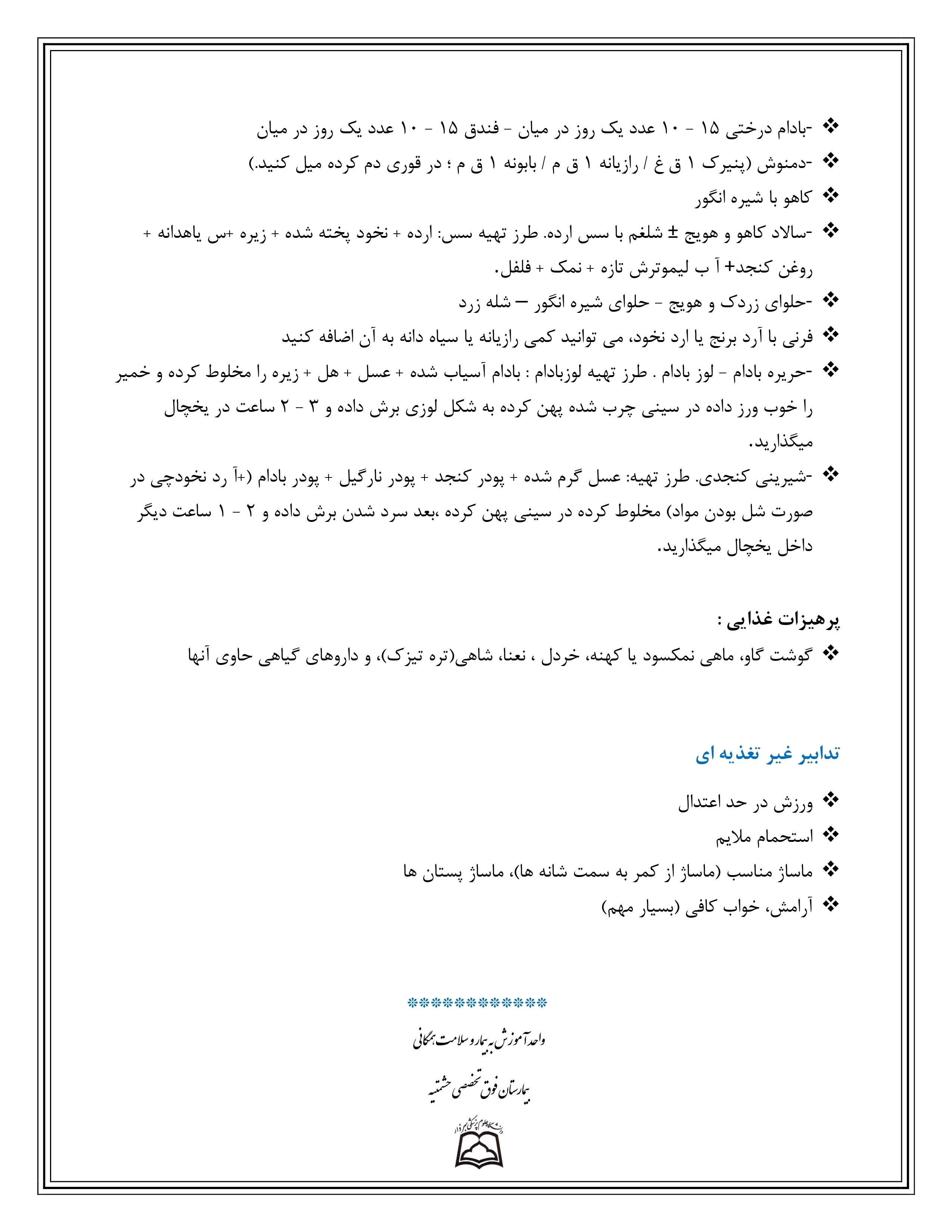 8-تغذیه کافی به خصوص مواد پروتئینی داشته باشید.