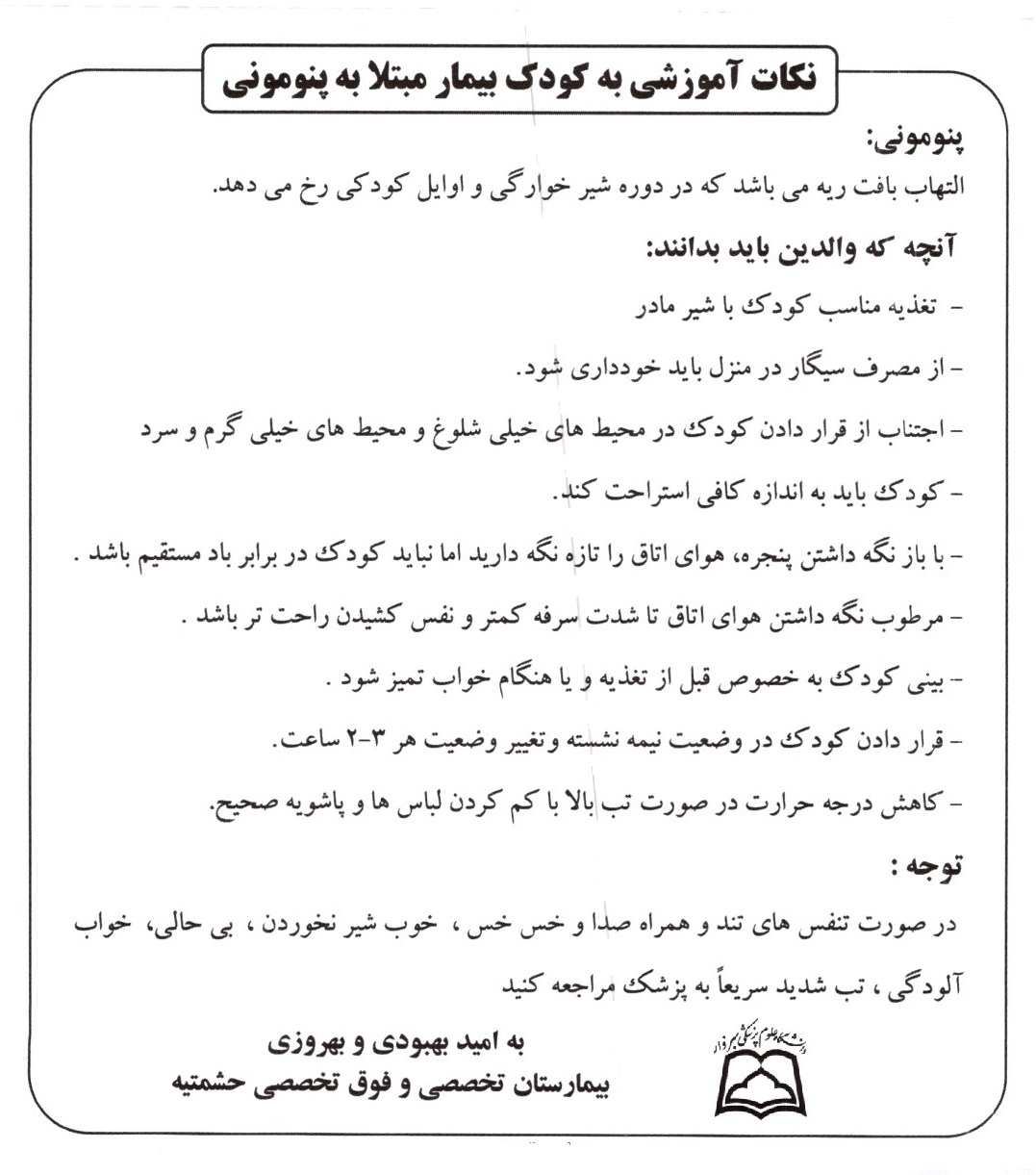 نکات آموزشی به کودک بیمار مبتلا به پنومونی